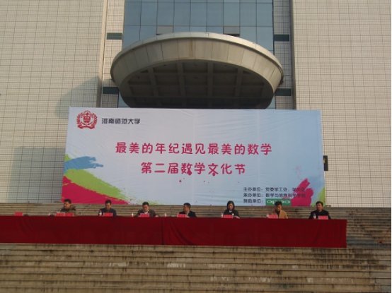 品味数学之美,领悟智慧人生。11月12日,由河南师范大学党委学工部、学生处主办,数学与信息科学学院承办的第二届数学文化节在图书馆前广场顺利开幕。河南师范大学副校长马治军,校党委学工部副部长、学生资助中心主任赵红杰,校团委书记孙冬青,校宣传部副部长华锋,教务处副处长佘德峰,数学与信息科学学院党委书记刘文安,院长苗雨出席了开幕式。全校各学院八百余名师生齐聚一堂,共享数学盛宴。
