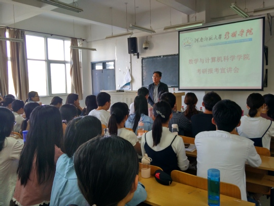 9月28日下午,数学与信息科学学院赴新联学院开展2019年硕士研究生招生宣讲工作,新联学院相关负责人、15级和16级本科生共200余人参加会议。宣讲会在新联学院向真楼205教室召开。