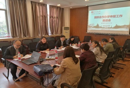 李学志在讲话中指出,加快国际化发展步伐是学校实现“世界知名,全国著名,区域引领,特色鲜明高水平大学”奋斗目标的重要举措之一。实现中外合作办学机构的突破是引进国外优质教育资源、提升我校国际化办学水平的重要途径,各相关单位一定要高度重视,形成共识。他充分肯定了与会人员前期在机构申报材料准备过程中所做的大量卓有成效的工作,对下一步工作提出了要求:一是进一步做好两校合作办学协议细节沟通工作;二是根据两校优势和特色,进一步做好合作专业遴选、人才培养目标确定及人才培养方案、课程体系设置的对接工作;三是细化任务分解,责任到人,加强沟通,把握进度,稳步推进,尽快高质量完成所有申报材料准备工作;四是做好蒙彼利埃第三大学代表团访问我校的接待准备工作。