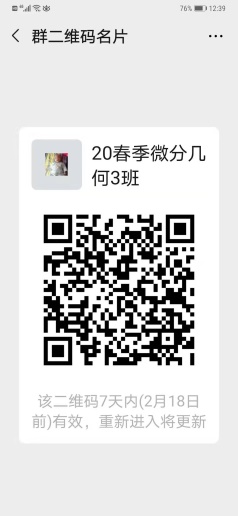 40 | 微分几何 | 18数学3班 | 王雅宁/超星学习通、微信群 |