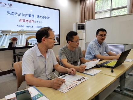 宣讲会上首先播放了河南师范大学形象宣传片。副院长黄广月致词,感谢各位学生与家长热情参加此次宣讲会,他就我校的基本情况、专业设置、办学特色及校风学风等情况做了简要介绍,并欢迎学子们积极选报河南师范大学。之后,在直播中播放了我校精心制作的《高考志愿填报的策略与技巧》宣讲视频,讲解了今年最新的高招政策、考生填报志愿技巧和注意事项,指导学生如何填报志愿、如何选择学校和专业。最后,在线上直播答疑阶段,招生宣讲小组成员董乐和马迎宾博士针对学生和家长提出的报考疑惑进行了耐心细致的解答,线上直播宣讲活动气氛热烈。