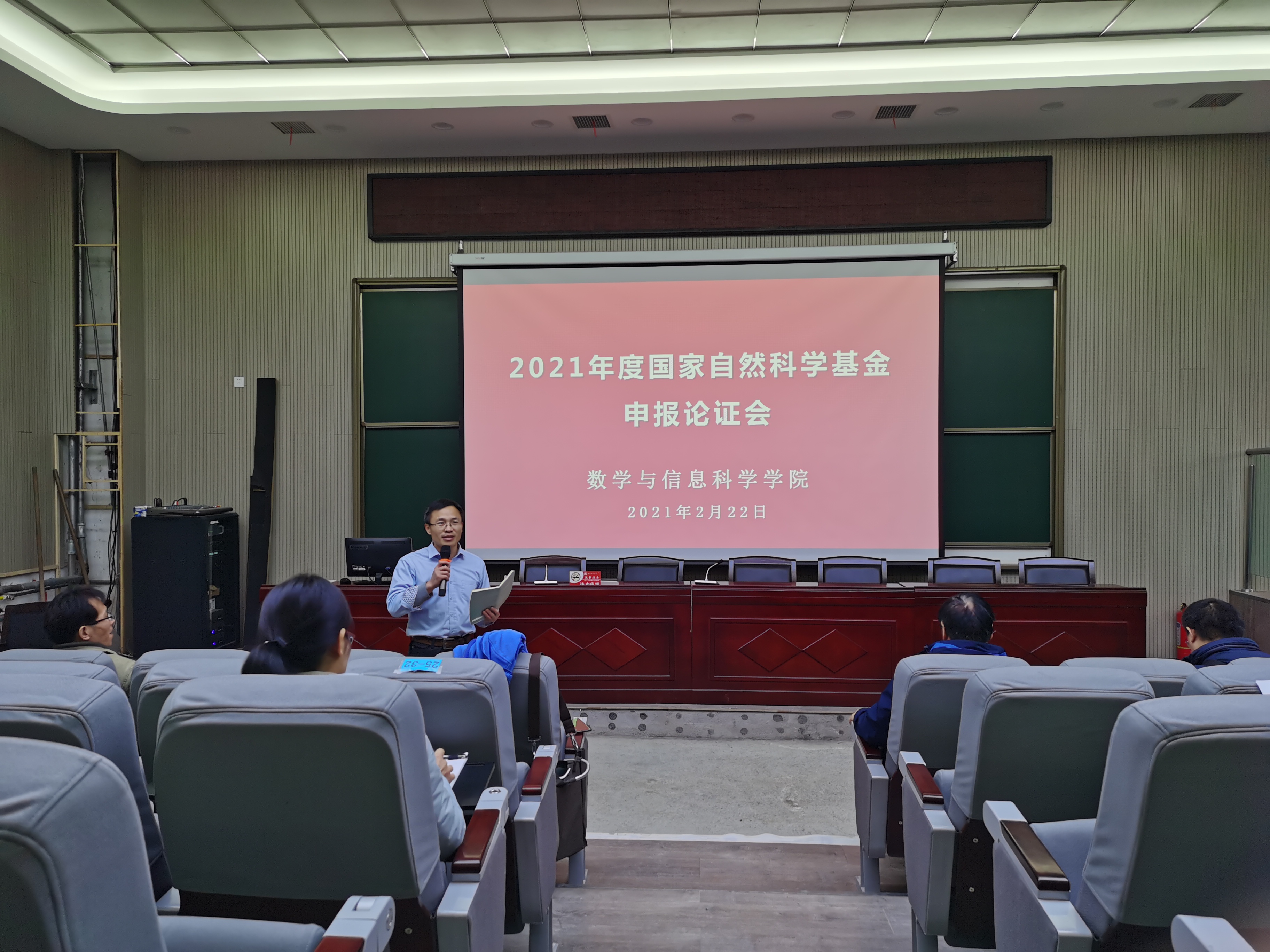 为进一步提升国家自然科学基金项目申报质量和中标率,增强学院国家级课题论证能力,2月22日上午,数学与信息科学学院在学院报告厅举行了国家自然科学基金申报论证会,申报老师和学院专家组参加会议,学院专家组成员有庞善起教授、黄广月教授、刘晓教授和闫威教授。会议由黄广月副院长主持。