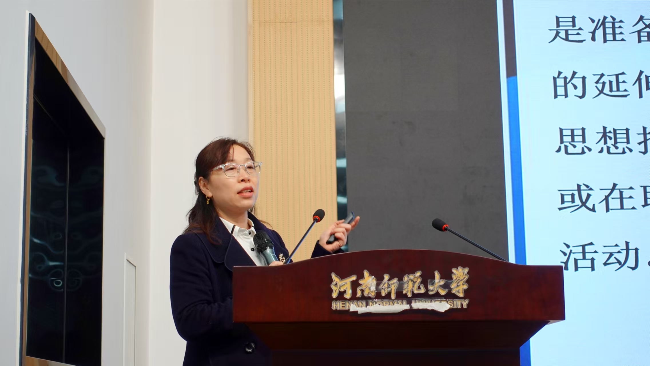 裴永刚作补充说明。他从校外的教育实践、教育见习、教育实习三个阶段以及校内的教育研习等方面做出阐述并给出建议,全面细致地讲解了实习时间、实习安排、实习内容与要求及注意事项。他鼓励学生通过实习生活努力提高自身教学能力、管理能力,为后续步入讲台打好坚实基础。