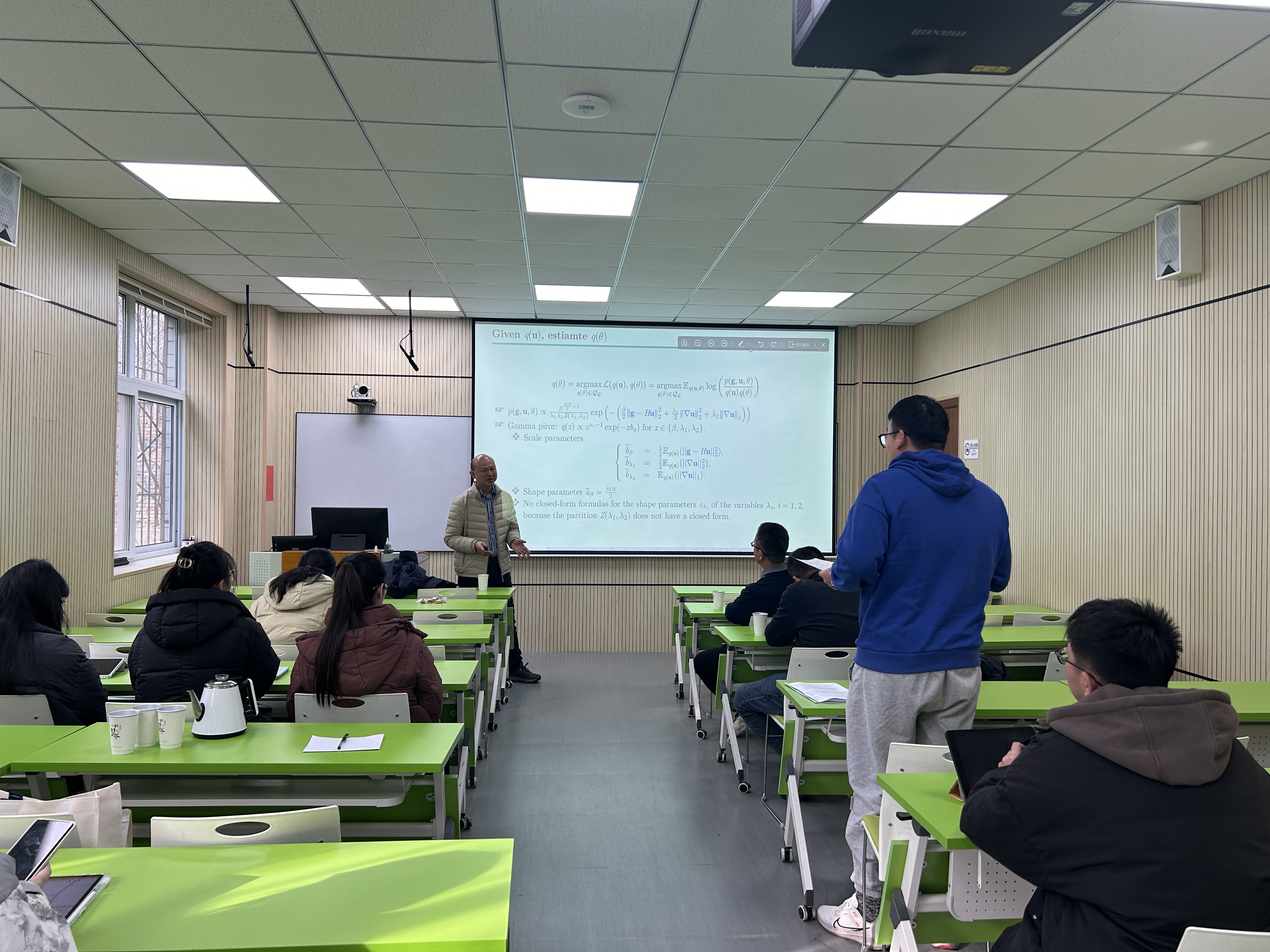 1月4日,应数学与统计学院邀请,湖南师范大学文有为教授做客数学与统计学院牧野格致讲堂,在学院南楼S107以线下形式为学院师生作题为 Image segmentation using Bayesian inference for convex variant Mumford - Shah variational model 的学术报告,相关专业教师和研究生三十余人参加了此次报告。报告由数学与统计学院裴永刚副院长主持。
