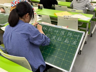 比赛共设置钢笔字、粉笔字和毛笔字三个项目,要求选手在规定时间内完成指定内容的书写创作。选手们屏息凝神,挥毫泼墨,从容展现扎实书写功底。钢笔字挺拔刚健,于方寸之间展现翰墨春秋;粉笔字笔触遒劲,在黑板上勾勒出工整字迹;毛笔字墨香氤氲,提按顿挫间尽显传统书法神韵。参赛学生以规范架构为基,借笔墨虚实传情,既有对碑文经典的认真临摹,亦见枯润相生的创意表达,体现了书法技艺与文化涵养的双重积淀,展现出了数院学子的文化风貌。根据比赛情况,郭汝彤等21名选手被推入校赛。