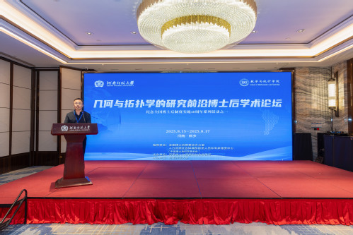 8月15日至17日,几何与拓扑学的研究前沿博士后学术交流活动在河南新乡顺利举行。河南省人力资源和社会保障厅二级巡视员张天运,中国科学院数学与系统科学研究院研究员、中国科学院大学段海豹教授,清华大学李海中教授,校党委常委、副校长杨玉珍教授出席开幕式,来自清华大学、复旦大学、上海交通大学、中国科学技术大学、南开大学、山东大学、厦门大学等全国各高等院校60余位专家学者,以及我校数学与统计学院师生代表共100余人参加开幕式。开幕式由数学与统计学院院长黄广月主持。