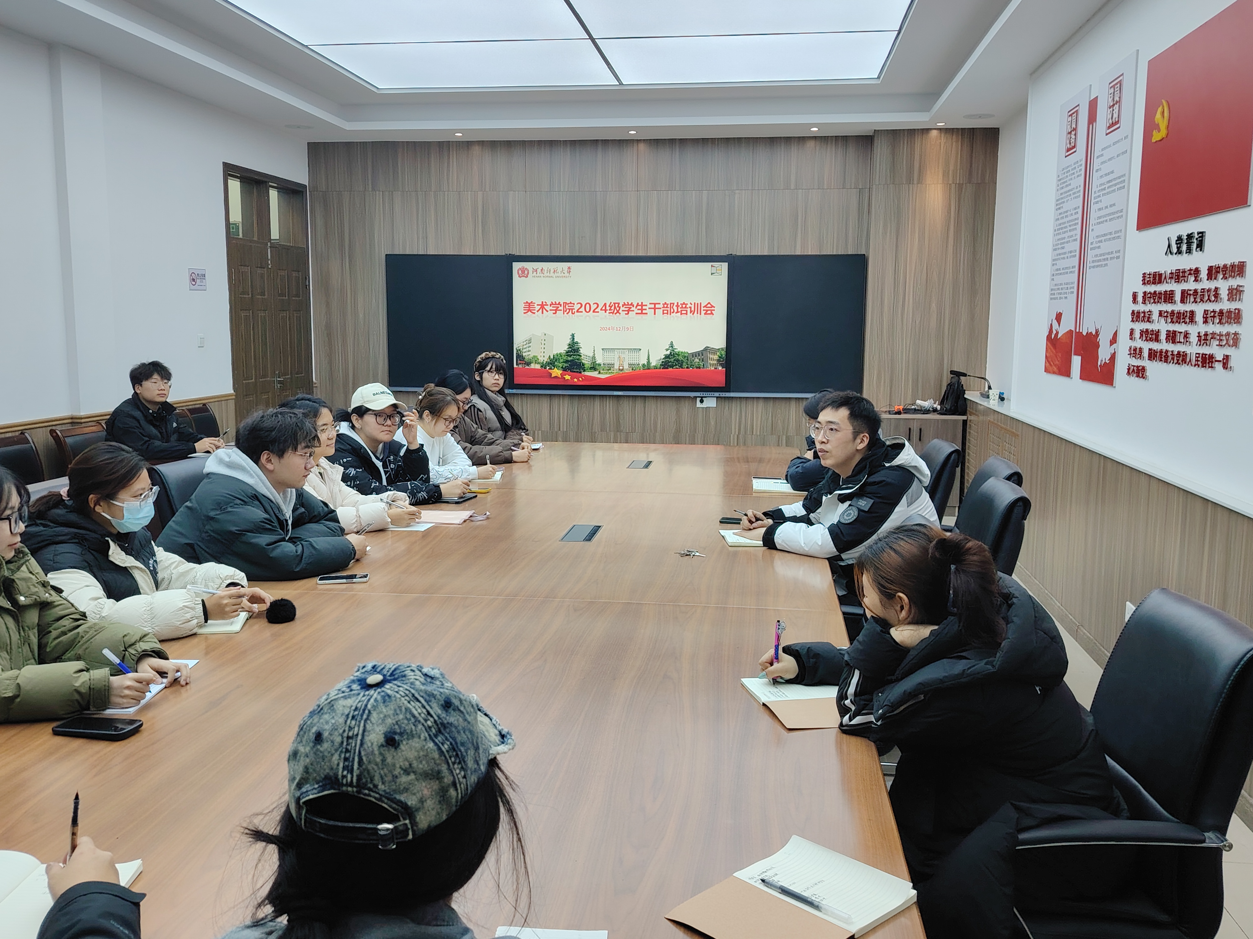 为提升学生干部的综合素质与管理能力,也为班级的良好发展奠定坚实基础。增强班级凝聚力。12月9日下午,美术学院2024级视觉传达设计,环境设计专业召开了主题班会,本次主题班会在崇美楼党员活动室由美术学院辅导员张鹏飞老师主持,兼职辅导员周卓娅老师及设计专业的全体班委参加。会议围绕多个要点展开,涵盖了班级管理的各关键方面。