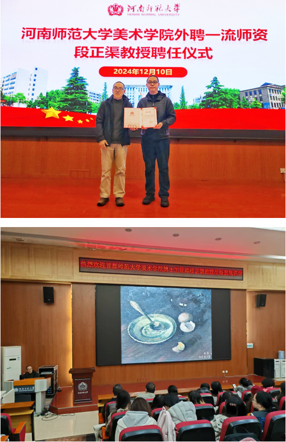 12月10日下午,美术学院一流师资聘任仪式于东校区求是中楼302报告厅举行。首都师范大学美术学院教授、博士生导师段正渠、河南师范大学美术学院院长陈巍、学院教师代表、相关专业方向本科生与研究生共同参与了此次聘任仪式。仪式由美术学院副院长王霄主持。