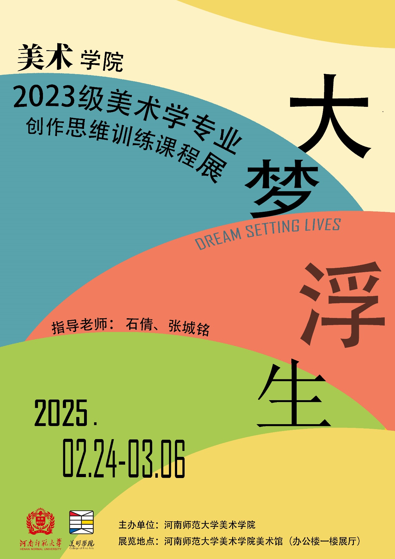 画笔绘就思维之花,青春绽放梦想之光 ——“大梦浮生”2023级美术学专业创作思维训练课程展,将于2025年2月24日在美术学院美术馆开幕。本次展览由石倩、张城铭老师指导策划,展览汇聚了145位美术学专业学子的200余件优秀作品,作品题材丰富,形式多样,涵盖了油画、国画、水彩、综合材料、影像等多种艺术形式。学生们用画笔描绘心中的梦想,用色彩诠释青春的激情,用创意展现对当代绘画的思考。每一幅作品都展现了青春学子们对艺术的无限热爱与探索精神。