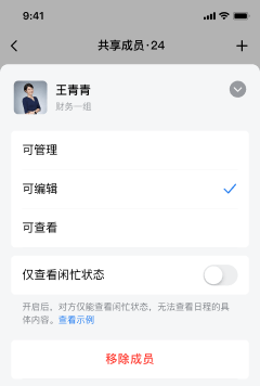 可以把日历本共享给同事,灵活设置成员权限,成员还可自主订阅公共日历