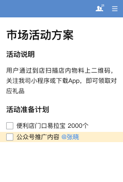 可将待办插入文档,@ 成员即可完成分配,支持定时提醒