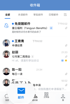 自动分类未读邮件、审批邮件、日程邮件,可以在邮件列表快速筛选,更方便地管理不同类型的邮件
