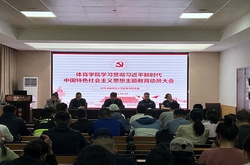 4月18日下午,体育学院学习贯彻习近平新时代中国特色社会主义思想主题教育动员会在学院一楼会议室召开。学院班子成员,全体教师党员参加会议。会议由院党委副书记王芳主持。