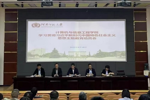 4月18日,计算机与信息工程学院学习贯彻习近平新时代中国特色社会主义思想主题教育动员会在计算机楼217报告厅召开。学院全体教职工参加会议,会议由院党委书记瞿洪明主持。