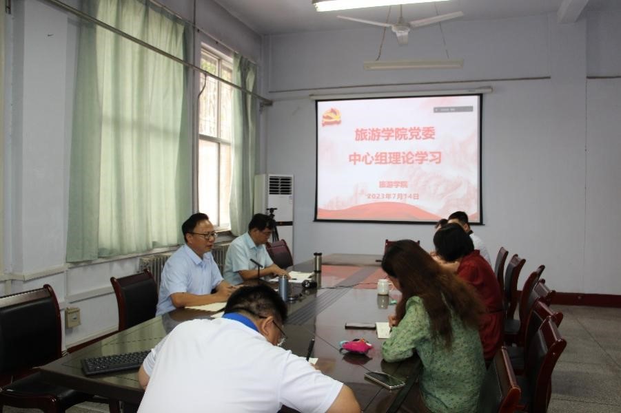 7月14日上午,旅游学院党委理论学习中心组在综合教研室召开主题教育专题学习会议。院党委中心组成员参加。旅游学院党委学习委员王二红领学,院党委书记冯峰主持。