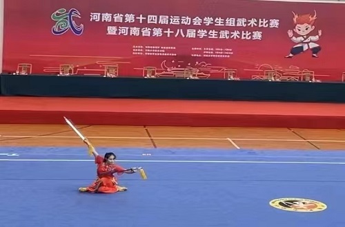 本次比赛为河南省运动会大学生组系列赛中的武术项目赛事。作为武术大省,本次比赛参赛人数创历年新高,参赛队员水平也是近年来最高的一届。我校武术代表队由孟国正任领队,李玫红担任甲组教练员,杨珊珊担任乙,丙组教练员,共12名队员参加本次比赛。经过激烈拼搏,软件学院本科2021级杨天啸,获得男子本科甲组太极器械第一名,体育学院研究生2022级王艺潜祸得女子丙组四类拳第一名。本次比赛我校共计获得2枚金牌,5枚银牌,6枚铜牌,4个第四名,2个第五名,1个第七名,男子甲组团体第三名,团体总分第八名的好成绩,我校被评为体育德风尚奖,我院教师李玫红获优秀教练员称号。