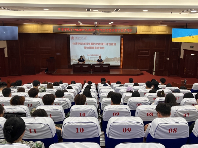 为了大力推进学校“双一流”创建和河南省国际化特色高校建设工作,切实提高体育学院本科生的国际视野和国际交流合作素养,9月25日下午,体育学院本科生国际交流提升计划暨出国事宜咨询会在我校法学院模拟法庭举行。体育学院副院长夏树花、博士蒋广涛、辅导员安东、张远航老师及体育学院学生代表200余人参加本次会议,蒋广涛主持了本次会议。