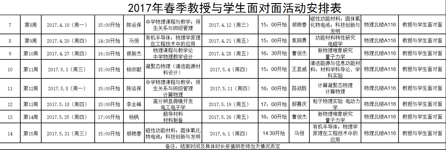 2017年春季教授与学生面对面活动安排表