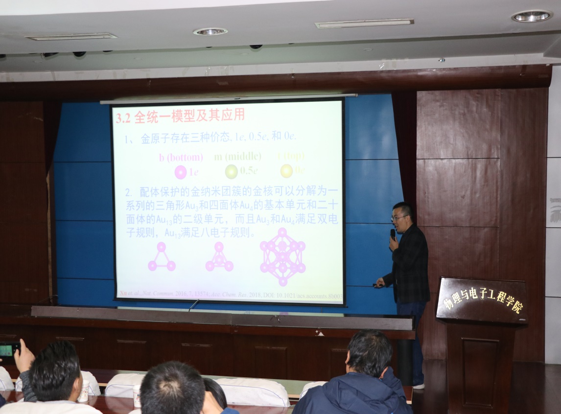 1123日晚上,应我校物理与材料科学学院邀请,宁波大学教授许文武来我校讲学。报告会在物理南楼二楼报告厅举行。物理与材料科学学院相关专业师生100余人参加了报告会。