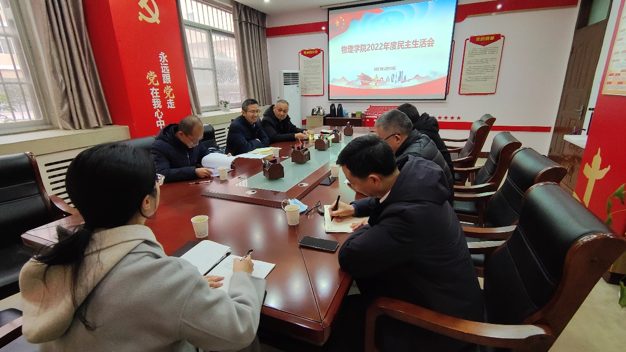 2月10日上午,物理学院在物理北楼党建活动室召开物理学院2022年度处级党员领导干部民主生活会,学院全体处级领导班子成员参加会议,校党委第一巡查组组长、化学化工学院党委书记秦法跃列席指导,会议由学院党委书记陈明银主持。