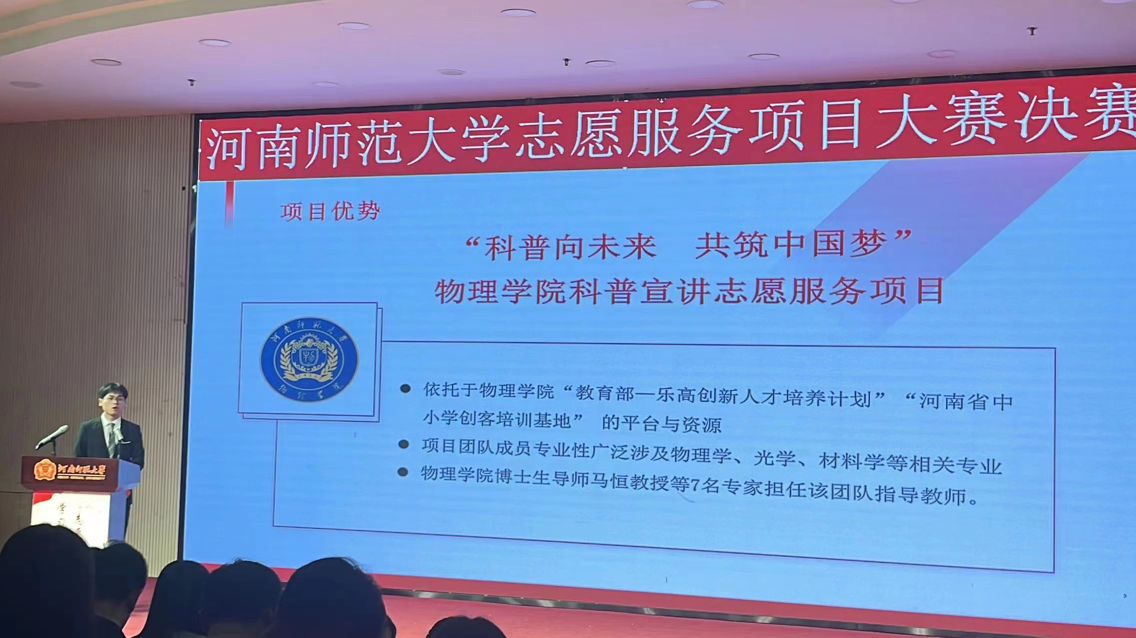 为深入学习贯彻党的二十大精神和习近平总书记对学雷锋活动作出的重要指示精神,引导我校师生积极参与志愿服务活动,在全校范围内挖掘培育一批具有师大特色的优秀志愿服务项目。4月2日晚,我校首届志愿服务项目大赛在东校区思政平台举行。本次大赛由党委宣传部、校文明办、校团委主办。我院团委的“科普向未来 共筑中国梦”科普宣讲志愿服务项目荣获一等奖。