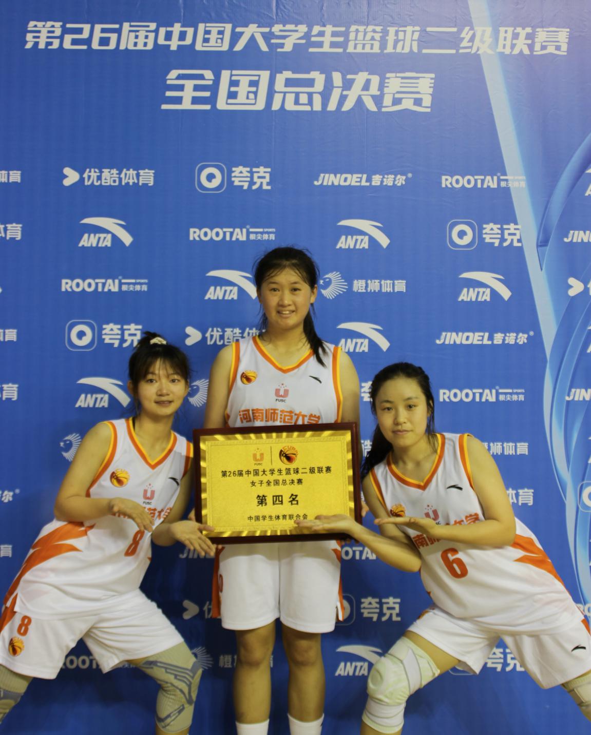 5月31日,第26届CUBAL中国大学生篮球联赛二级联赛全国总决赛在青岛莱西市体育中心体育馆开幕。我校女子篮球队以河南赛区第一的身份首次晋级全国赛,12名队员参赛。物理学院本科生陈宸、施娅和硕士研究生宗婉贞在比赛中表现优异,共同助力我校闯入全国四强,荣获全国总决赛第四名。