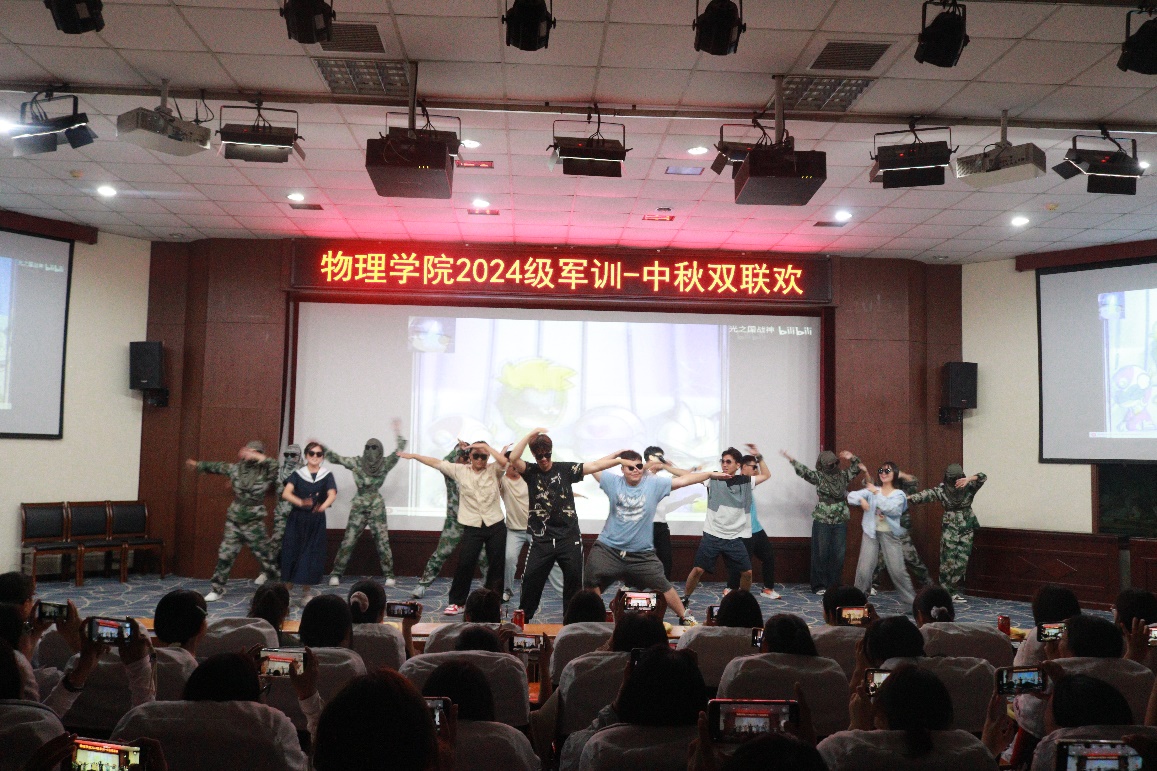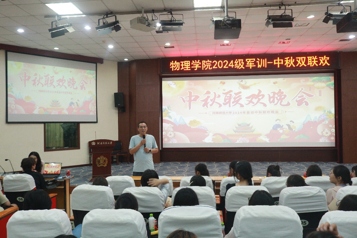 为帮助新生更好适应大学生活,增进同学感情,总结军训收获,传递学院关怀,感受节日温暖。9月17日晚上,物理学院在物理北楼三楼报告厅举办“2024级军训-中秋双联欢”晚会,物理学院党委副书记宋艳兵、新生辅导员及2024级全体新生参加了晚会。