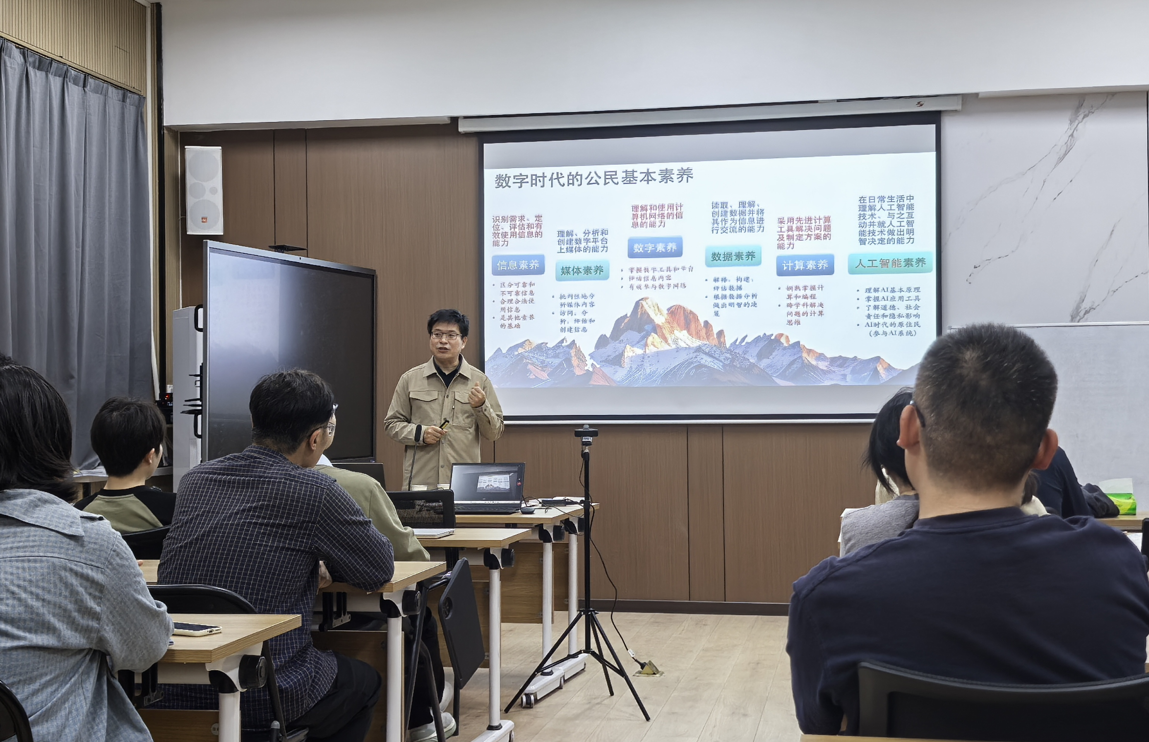 4月11日下午,应物理学院杨炳方教授所邀,北京大学物理学院副院长曹庆宏教授在物理北楼C505作了题为“AI时代拔尖人才培养的几点思考”的报告,物理学院的相关老师和拔尖班的学生聆听了此次报告,报告会由校特聘教授马建平主持。
