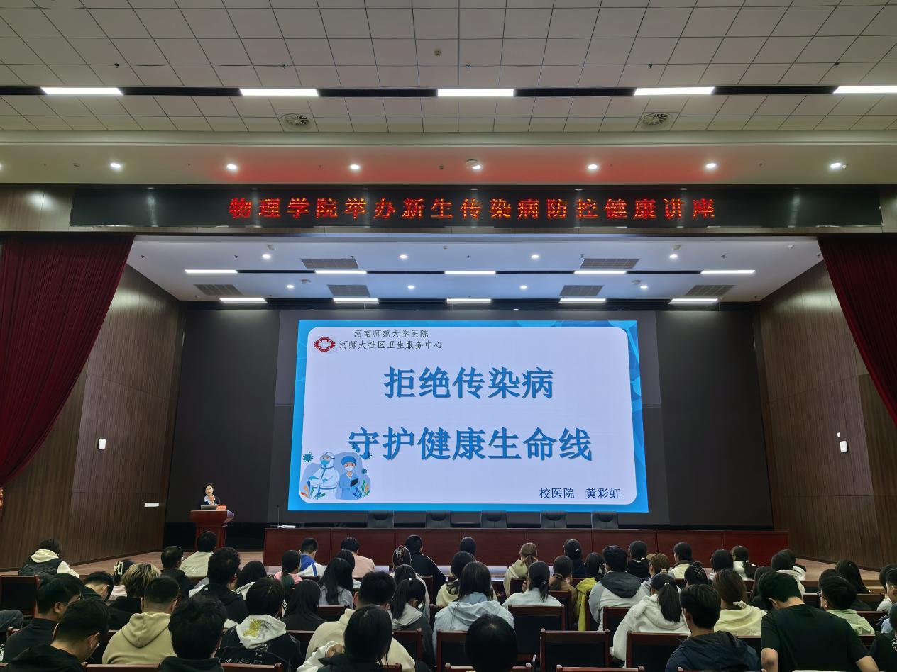 为使新生增强健康防护意识,筑牢校园传染病防控屏障,10月12日,物理学院特别邀请河南师范大学校医院黄彩虹医生为2025级新生举办了一场聚焦医保政策和传染病防控知识的专题讲座,2025级辅导员和2025级新生参加了本次活动。