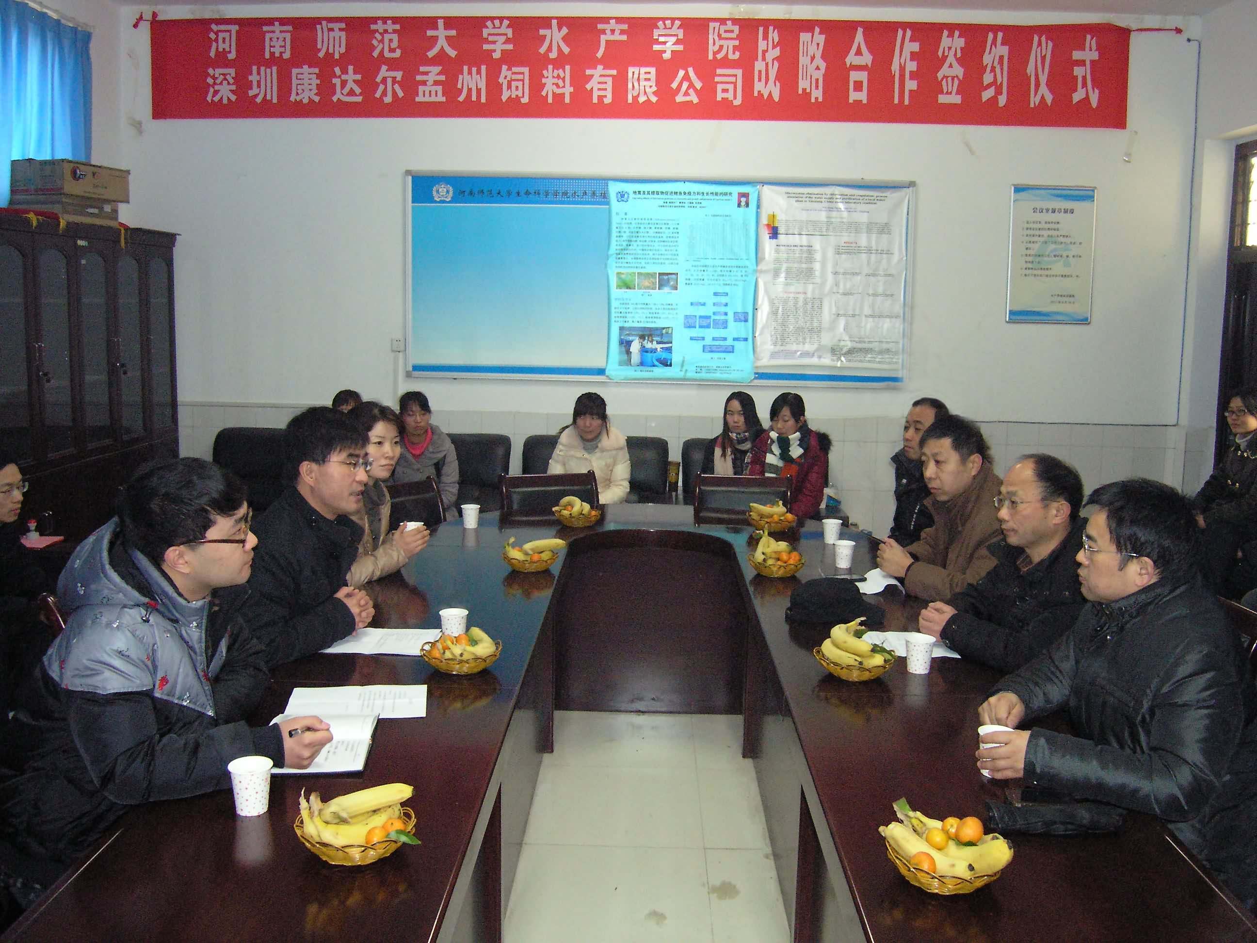 深圳康达尔孟州饲料有限公司是上市公司深圳康达尔(集团)股份有限公司的下属企业,其水产饲料产量和市场占有率在河南名列前茅。与深圳康达尔孟州饲料有限公司的合作,将会为我院人才培养机制改革创造契机,同时,为我院本科生、研究生实习实训及教师的科研活动等提供广阔平台。双方的合作凸显了高校学科、人才、技术等科技资源优势和企业的资金、市场及产业化优势,将形成人才、技术、资源的共享和互动,提升双方的创新能力,实现高校服务地方经济建设的职能。