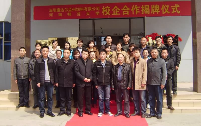 挂牌首先,校、院领导和老师与深圳康达尔孟州饲料有限公司毛向嵘总经理等公司领导进行了座谈。座谈会上,双方就建立校企合作的重要意义、运行机制和模式进行了深入会谈;也就今年本科生、研究生实习、实训安排进行了交流;并对协助深圳康达尔孟州饲料有限公司建立研发中心的工作进行了安排和部署;随后,双方进行了“河南师范大学研究生教育创新实践基地”和“河南师范大学—高新技术企业协作共同体建设单位”的揭牌仪式。深圳康达尔孟州饲料有限公司的主要员工也参加了揭牌仪式。