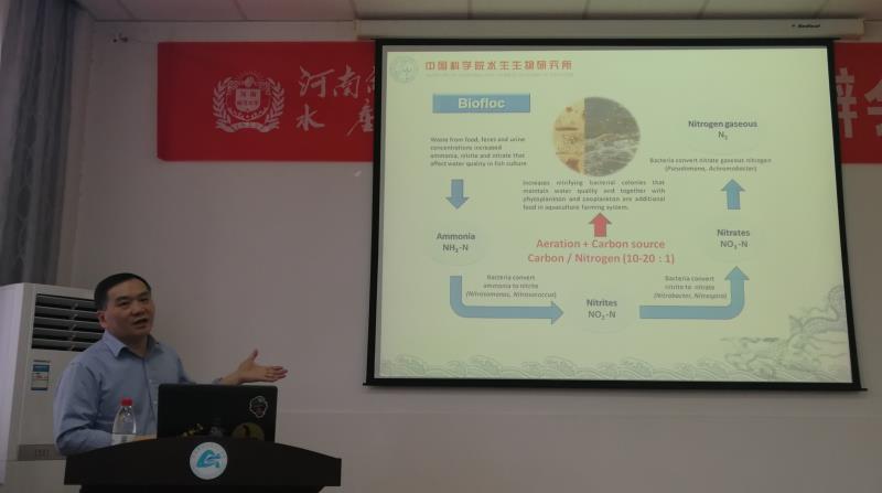 菌胶团形成菌在活性污泥法和水产养殖生物絮团技术中具有关键作用,邱东茹研究员详细介绍了团队近几年在活性污泥/生物絮团微生物组和菌胶(絮)团形成分子机制方面的系列研究成果。报告通俗易懂,内容丰富,引起了与会师生的热烈讨论,拓宽了我院师生在养殖环境水质管理、新型养殖模式构建方面的研发思路。
