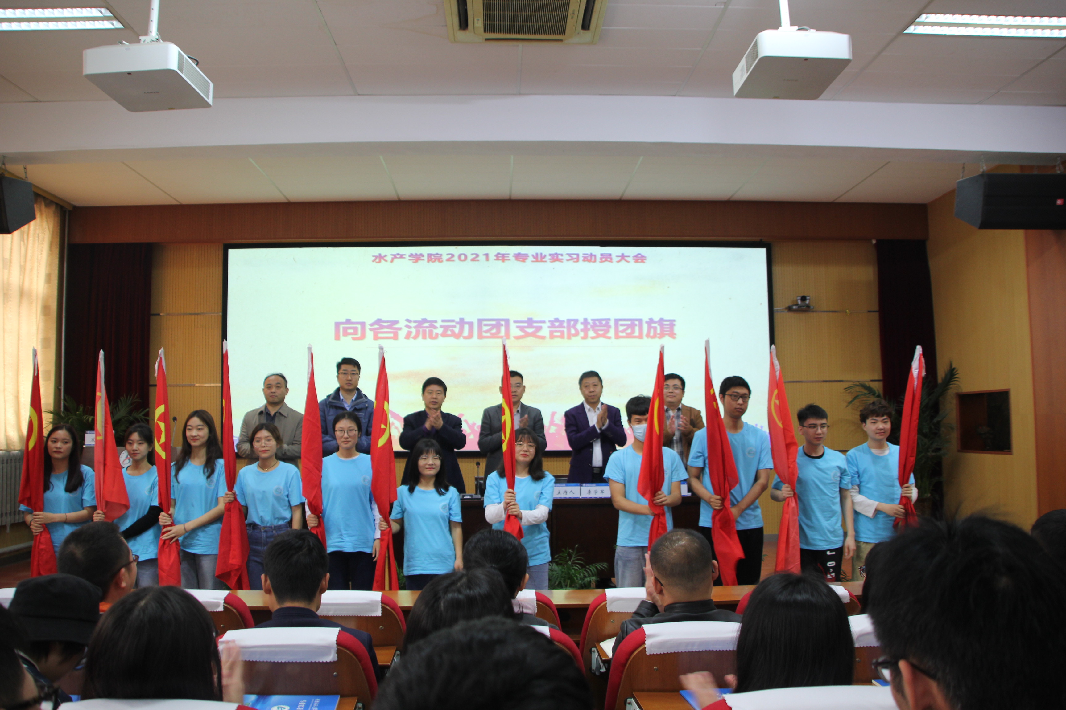 4月12日上午,水产学院2021年度专业实习动员大会在外国语报告厅举行。教务处副处长崔振成、水产学院党政领导班子出席了动员会。全体2018级学生、各实习队指导老师及相关负责老师参加了动员会。会议由水产学院副院长李学军主持。