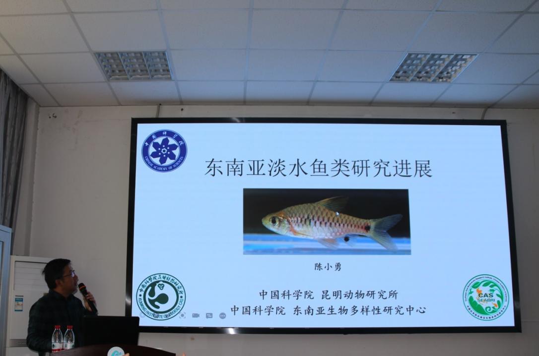 陈小勇研究员以“东南亚淡水鱼类研究进展”为题,详细介绍了东南亚淡水鱼类研究的发展历程。东南亚复杂的地球板块构造历史和特殊的地理位置,使其成为地球上生物多样性最为丰富的地区之一。其团队在东南亚地区实地调查期间,记录和描述了多种淡水鱼类新种及新记录种,发现并提出多个类群的分类学问题。陈小勇研究员表示,东南亚地区淡水鱼类物种多样性相关研究仍有很大空白,应尽快联合多学科联合攻关,建立资源共享和研究网络,培养更多年轻的分类学家,推动东南亚地区淡水鱼类研究的快速发展。报告结束后,陈小勇研究员与教师及研究生就鱼类分类和多样性研究进行了热烈讨论。