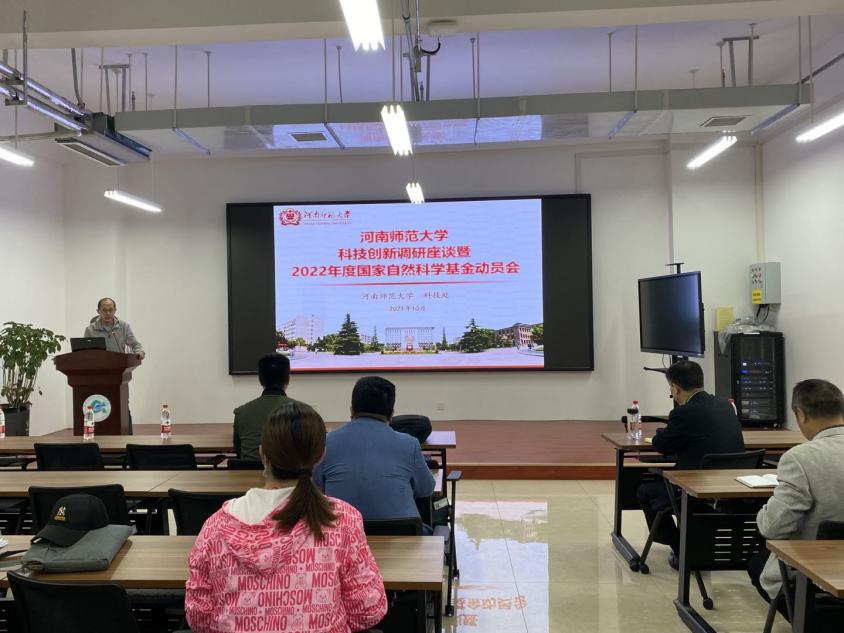 常钦首先对2021年度河南师范大学国自然申报情况进行了总结和分析,针对当前存在的问题,他指出各学院应及时构建科学的学术导向、深入分析学院人员情况、开展有效学术交流、落实三级论证,把国自然申报当成日常工作来抓。最后,他布置了2022年度学校国自然申报时间安排和申报要求,并向老师们解读了学校新修订的一些文件政策,希望老师们在下一年度的申报工作中取得优异成绩。