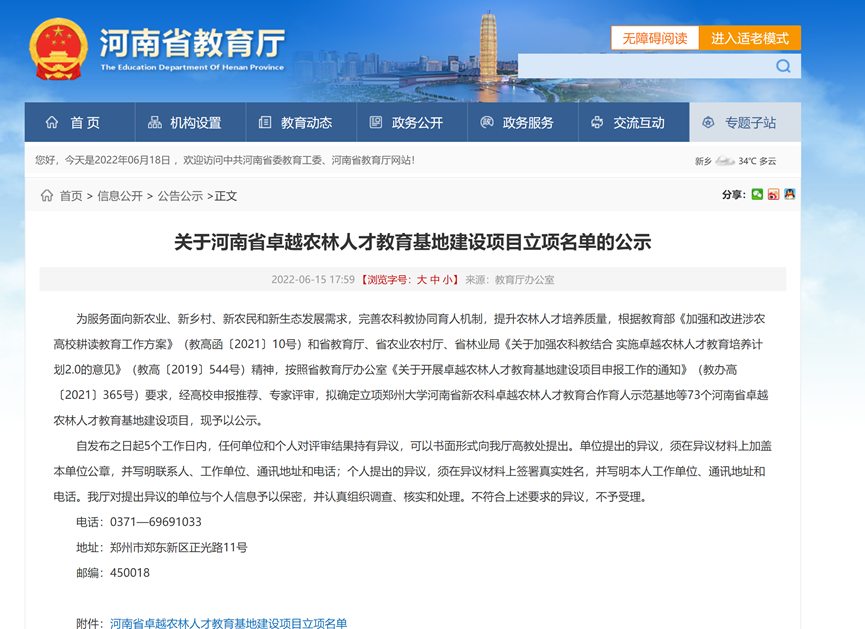 6月15日,河南省教育厅公布了河南省卓越农林人才教育基地建设项目。我院与河南省水产科学研究院联合申报的“河南师范大学未来水产人才教育合作育人示范基地”,以及与河南省农都农业发展有限公司联合申报的“河南师范大学农都卓越水产人才耕读教育实践基地”获批立项建设。