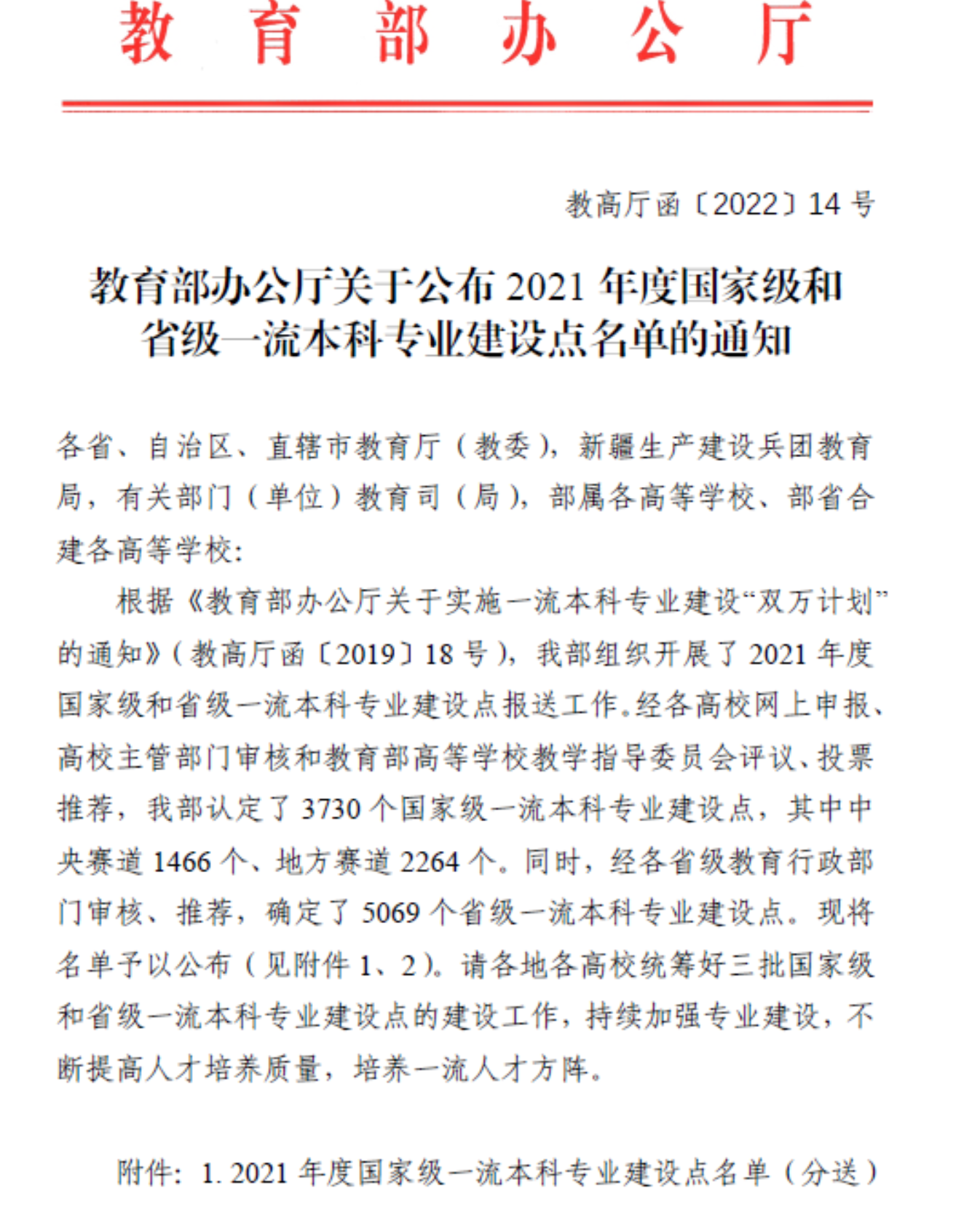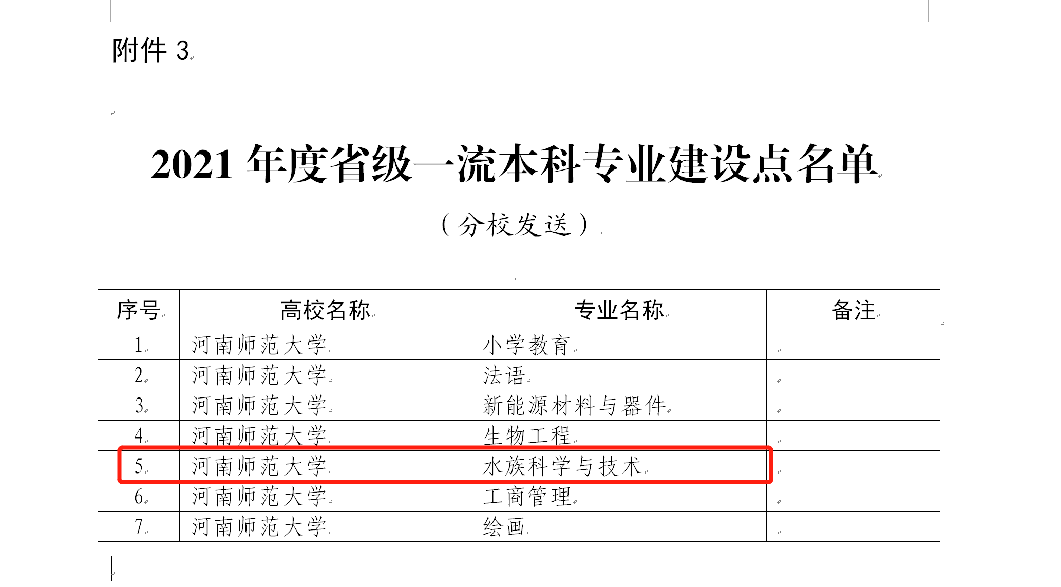 近日,教育部办公厅发布《关于公布2021年度国家级和省级一流本科专业建设点的通知》(教高厅函〔2022〕14号),我院水族科学与技术专业入选河南省一流本科专业建设点,这是我院在一流本科专业建设方面取得的又一可喜成绩。