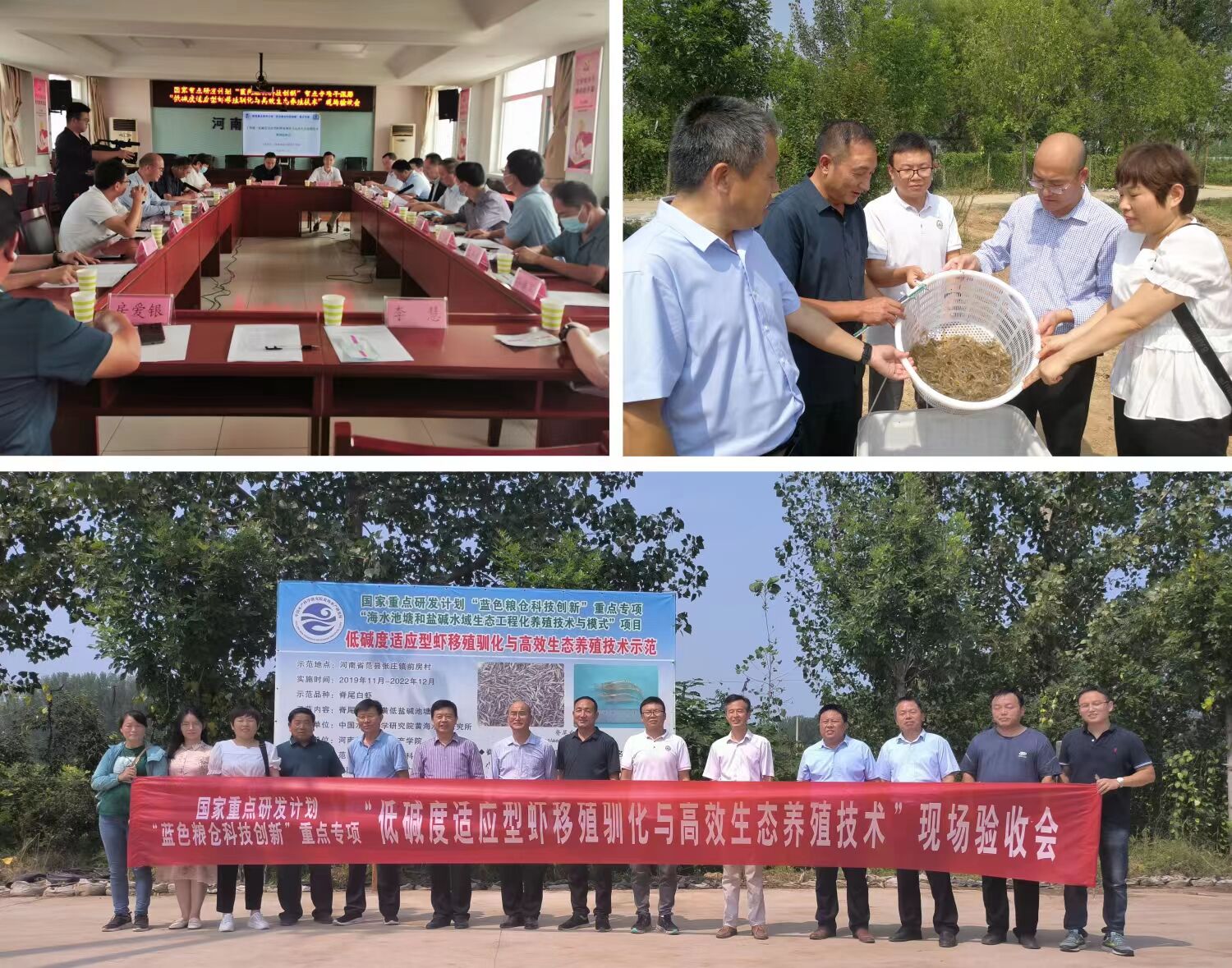2022年9月2日,由我院和中国水产科学研究院黄海水产研究所合作承担的国家重点研发计划“蓝色粮仓科技创新”重点专项子课题——低碱度适应型虾移殖驯化与高效生态养殖技术(2019YFD0900405-02)低盐碱池塘繁殖工作在范县顺鑫农民专业合作社通过了专家现场验收。
