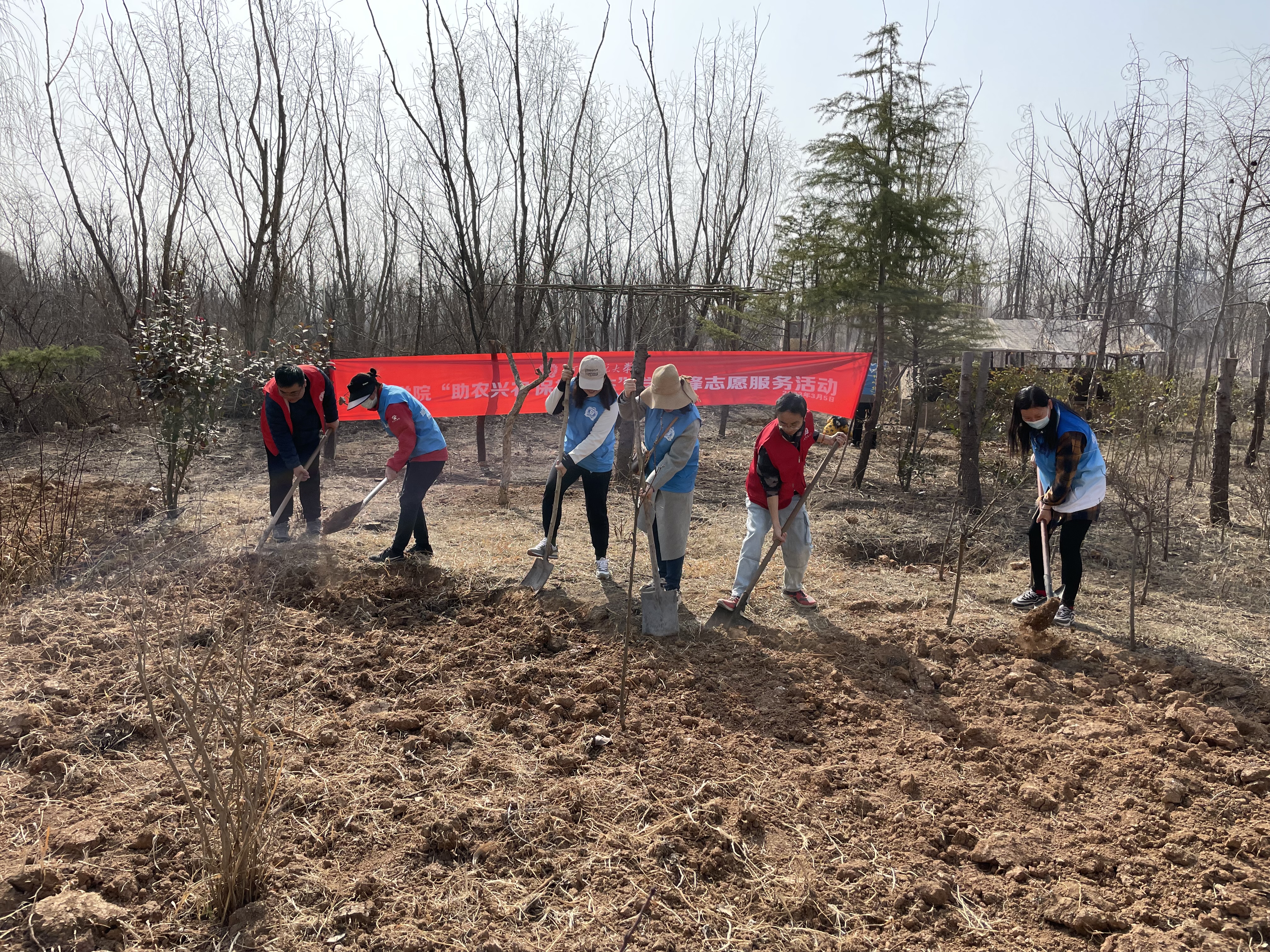 阳春三月,生机盎然,学院教职工身着志愿服来到新乡市某大型果蔬水产养殖(植)基地,大家分为翻地松土、捡拾垃圾、水质检测三个志愿小分队开展服务。有的手持铁锹、铁铲帮助农户开垦果园挖地翻地,助力春耕备耕,有的手持火钳、扫帚等工具沿着小路、池塘,清理周边白色垃圾污染;有的拿着水质分析测试仪,为附近池塘水质进行免费检测,指导渔业养殖户科学养殖。志愿活动把渔业技术、科普知识、水质检测、志愿服务送到农户身边,得到当地农户的热烈欢迎和高度好评。