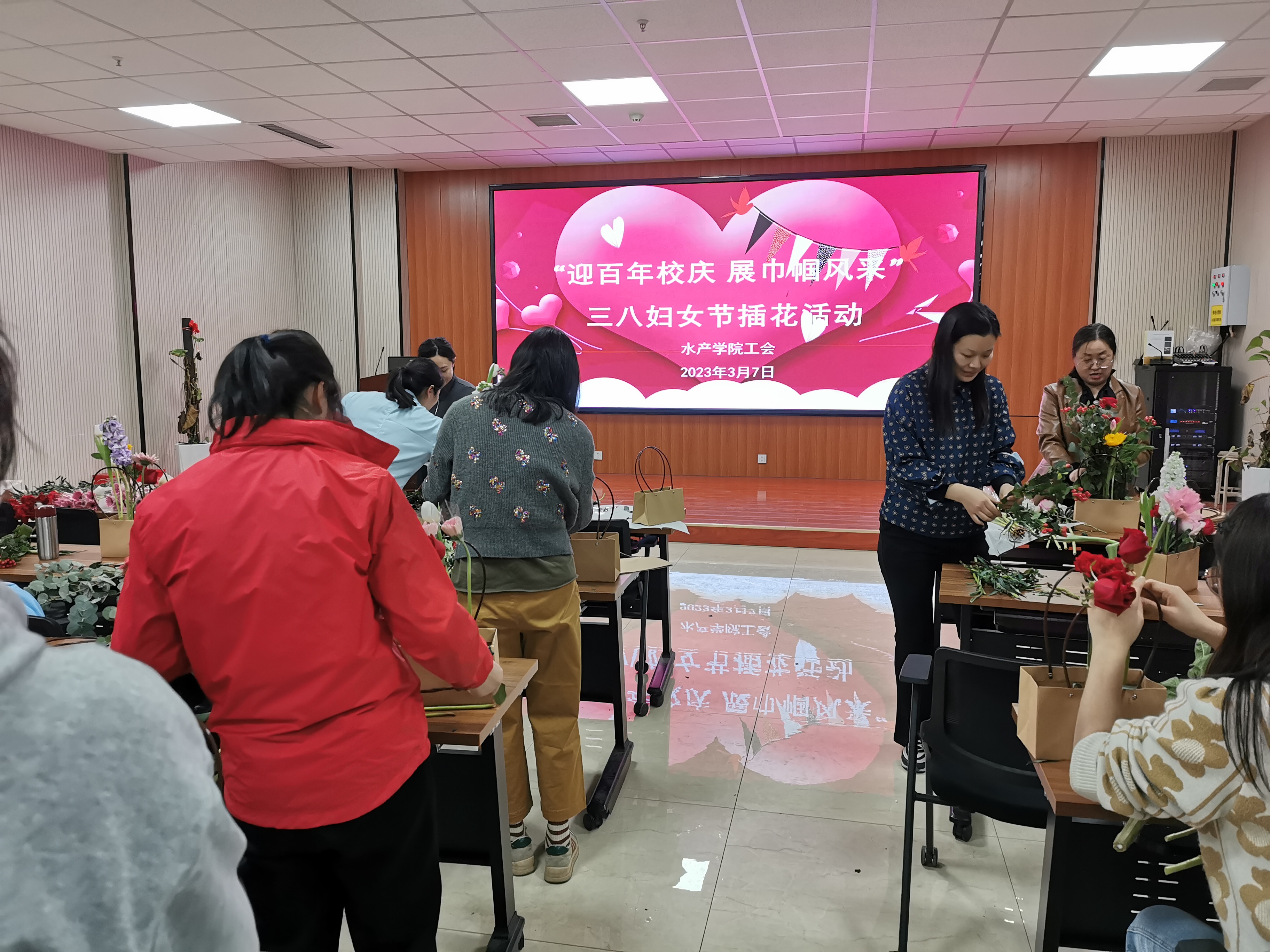 为了庆祝“三八”国际妇女节,丰富女教工的业余文化生活,3月7日下午,我院分工会在学院203会议室举办“迎百年校庆,展巾帼风采”三八妇女节插花活动。