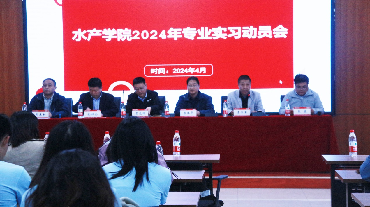 2024年4月8日上午,水产学院在实训楼203会议室举办2024年专业实习动员大会。教务处副处长贾光瑞、学院党委书记李保华、院长孔祥会、党委副书记张震、副院长张建新、各实习分队指导老师以及2021级全体学生出席和参加了此次活动,会议由副院长李学军主持。