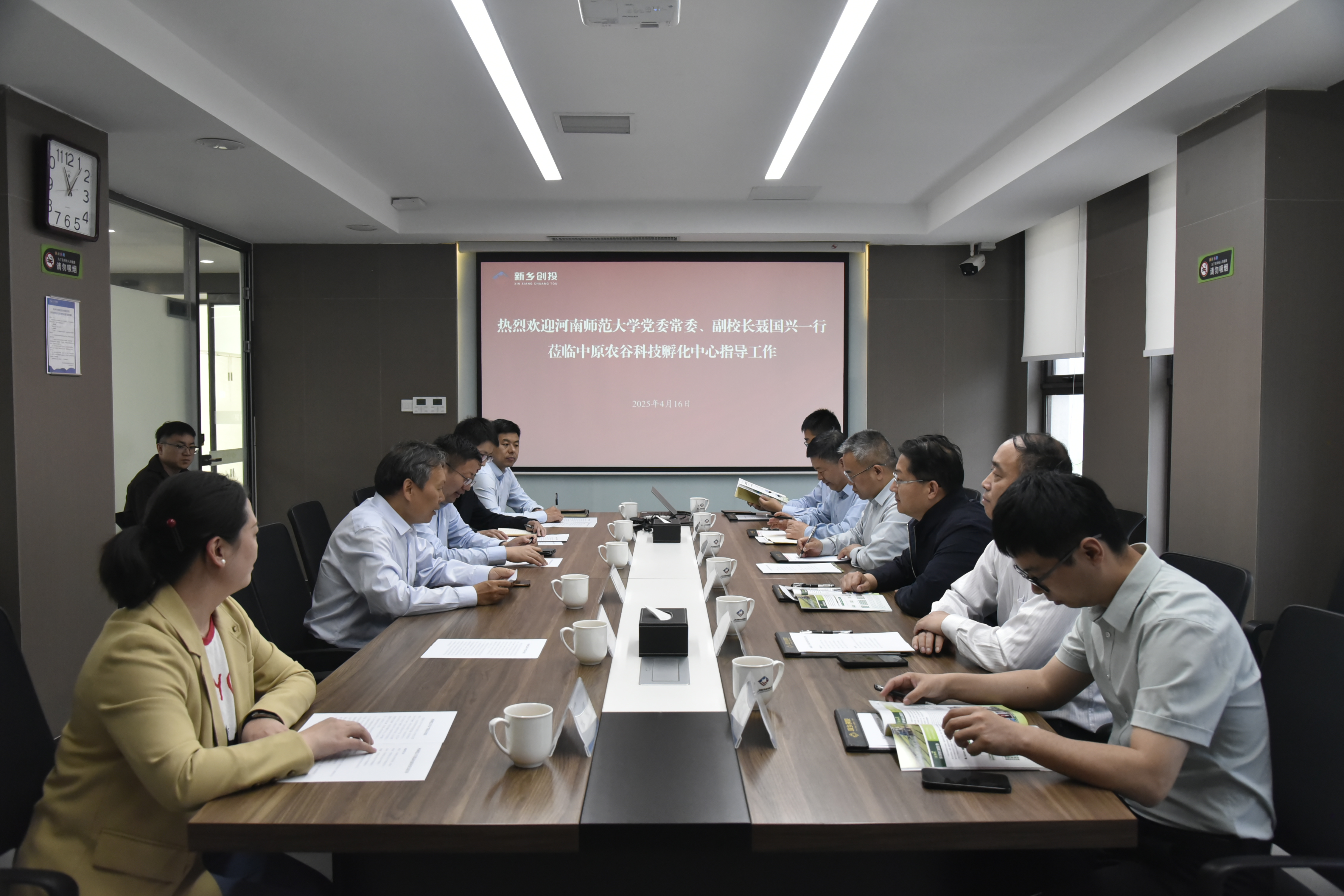 4月16日,河南师范大学党委常委、副校长聂国兴带领水产学院党委书记李保华、院长孔祥会等一行6人赴中原农谷开展调研交流活动。中原农谷管委会副主任杨海峰及相关负责同志参加座谈。双方围绕水产学科发展、种业振兴、产学研合作及产教融合等议题展开深入探讨,旨在推动校地协同创新,助力河南省现代农业高质量发展。
