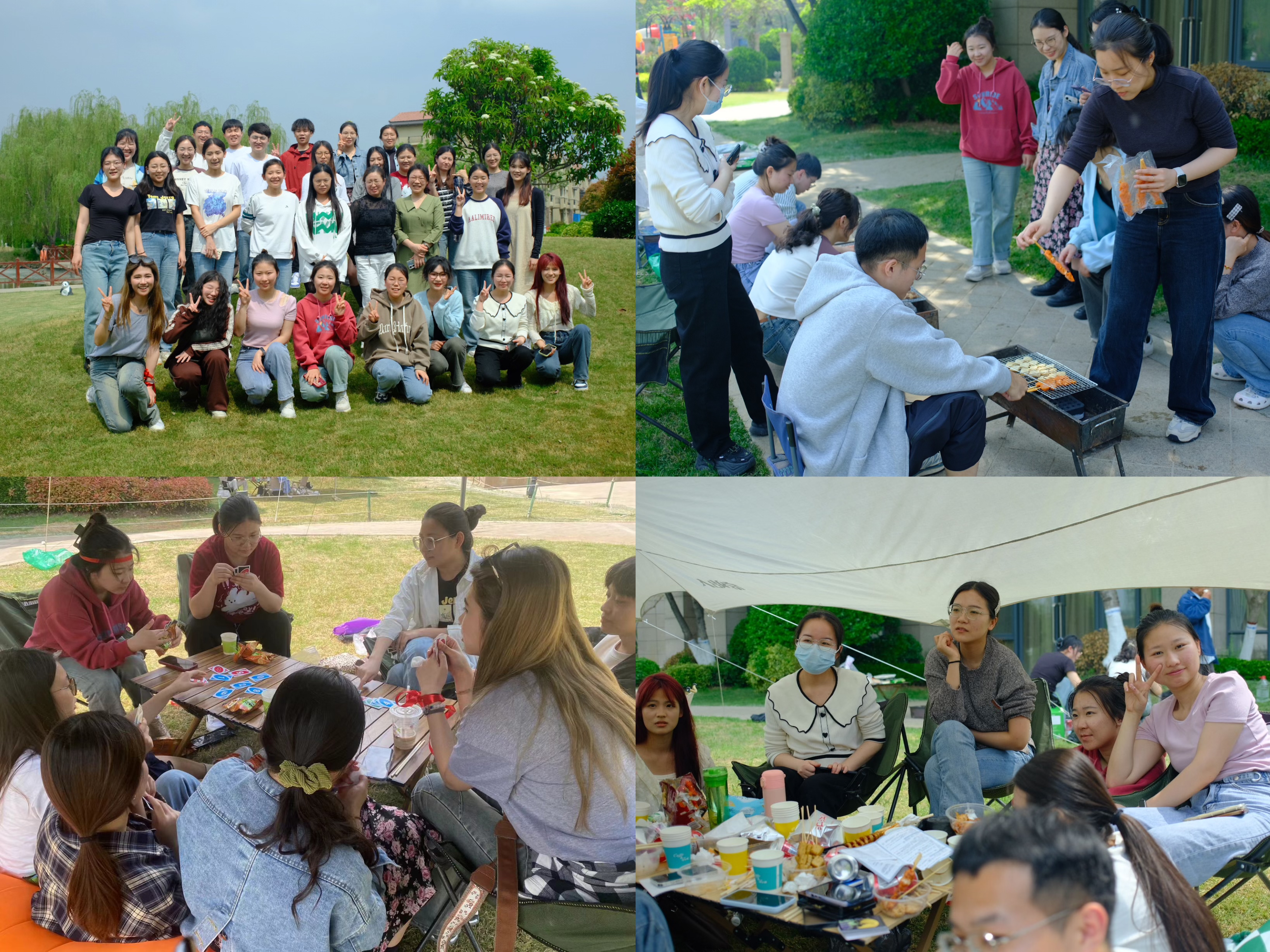 同学们将天幕和桌椅布置好,纷纷准备好充气沙发、烧烤架、零食以及餐具,谈笑间,烧烤组的同学们就已经开火,空气中香味弥漫,荤素搭配、冷饮兼具,品尝着劳动获得的美食,大家玩起了小游戏,气氛火热。在欣赏户外春色的同时,释放身心压力,增强了团队的凝聚力,为未来课题组的工作顺利开展打下了扎实的基础。