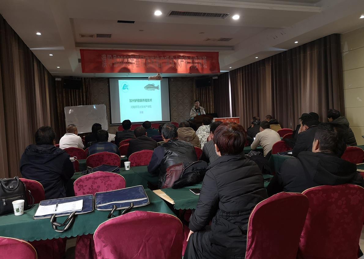 12月28日,我团队张猛博士和学院田雪副教授赴濮阳县开展水产科技示范户培训班。田雪副教授教授和张猛博士分别作了题为“池塘鱼菜(水生植物)共生综合种养技术”和“加州鲈健康养殖技术”的专题报告,并就养殖户提出的问题进行了现场解答,内容包括池塘营造、鱼苗鱼种培育、水质调控、病虫害防治等水产相关知识。