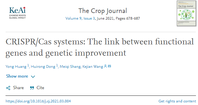 我为The Crop Journal代言 |中国水稻研究所王克剑团队综述CRISPR/Cas基因组编辑技术在水稻遗传改良中的应用