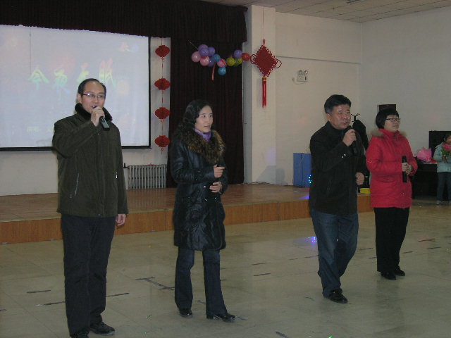 “咚地啷个天呐 ,咚地啷个地, 咚地啷个南北与西东;咚地啷个你呐 咚地啷个我 咚地啷个今天是开门红……”踏着《开门红》乐曲的节拍,21名男、女教职工欢天喜地地舞着手帕和彩带,拉开了庆祝2012年元旦晚会的序幕。