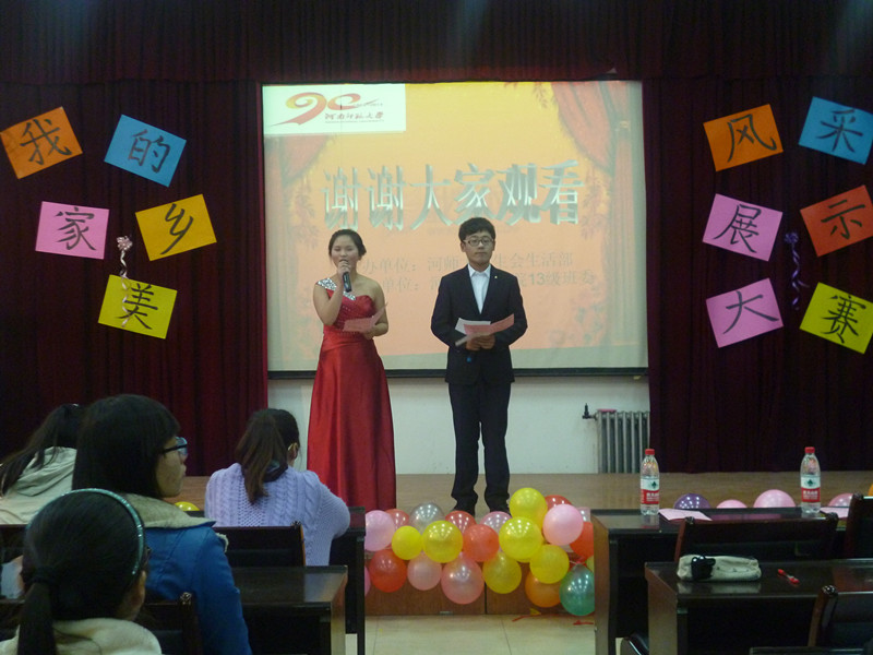 活动中,七个不同地区的学生团队代表分别通过话剧、小品等不同形式向大家展示自己家乡的独特之美。其中,4号参赛团队表演的《说唱家乡》将郑州的特色美食、经典名胜改编为嘻哈词曲,幽默风趣,表演风格令人耳目一新,获得了大家的阵阵掌声。由6号参赛团队带来的表演《新闻胡播》别出心裁,通过现场采访的形式,融入新闻时事播报和天气预报等内容,对商丘的主要地区作了介绍,赢得了满堂喝彩。接着,由2013级辅导员王科参与演唱的歌曲《相亲相爱一家人》真挚感人,展现出同学们“缘聚生科大家庭”的情谊,场面异常温馨。活动接近尾声时,同学们纷纷在“心愿墙”上,写下自己对家乡最真诚的祝福,呈现出广大学子的赤子情怀。最后,5号参赛团队带来的《河北One two one》凭借极具特色的方言PK、幽默诙谐的影视改编赢得了全场师生的一致好评,荣获本次比赛一等奖。