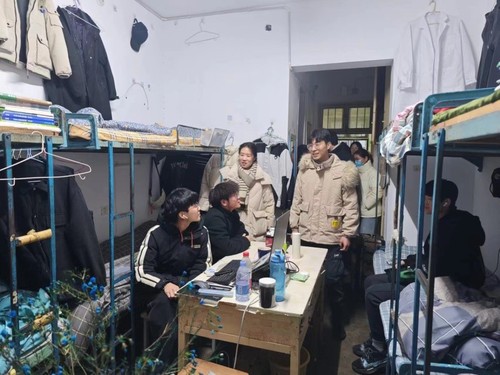 走访过程中,辅导员刘世学着重强调了寝室用电安全、内务整理等事宜,并对环境卫生较好、氛围活跃的寝室进行了表扬,对存在问题的寝室提出了整改建议。与此同时,他与学生就学业进展、未来规划、心理状态等方面进行了深入交流。随后,辅导员董志萍对大家提出的关于学习、生活和校园安全管理等各方面的问题进行了解答,并对同学们提出真切期望:希望大家能够加强自我管理,营造整洁舒适的寝室氛围,养成健康文明的生活习惯,培养积极向上的良好心态。