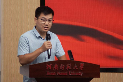 生命科学学院教学秘书蔺庆伟老师作为教师代表发言,他从理想与目标、自信与坚强、勤奋与努力三个方面提出了新生寄语,表达了对新生们的殷切期望,也流露出了身为教育者的深情与责任。