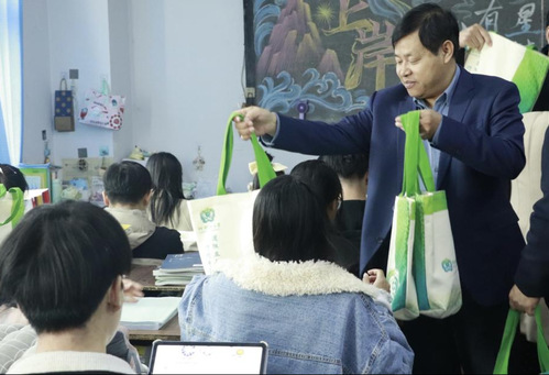 最后,各位领导老师为考研学子发放了精心准备的“加油礼包”。礼包为学院定制帆布包,内含“妙笔生花”签字笔一支,“袜!是研究生”袜子一双,“释放压力”释压包一个,“心想事橙”橙子一个,“乐事将至”薯片一包,手写明信片一张。